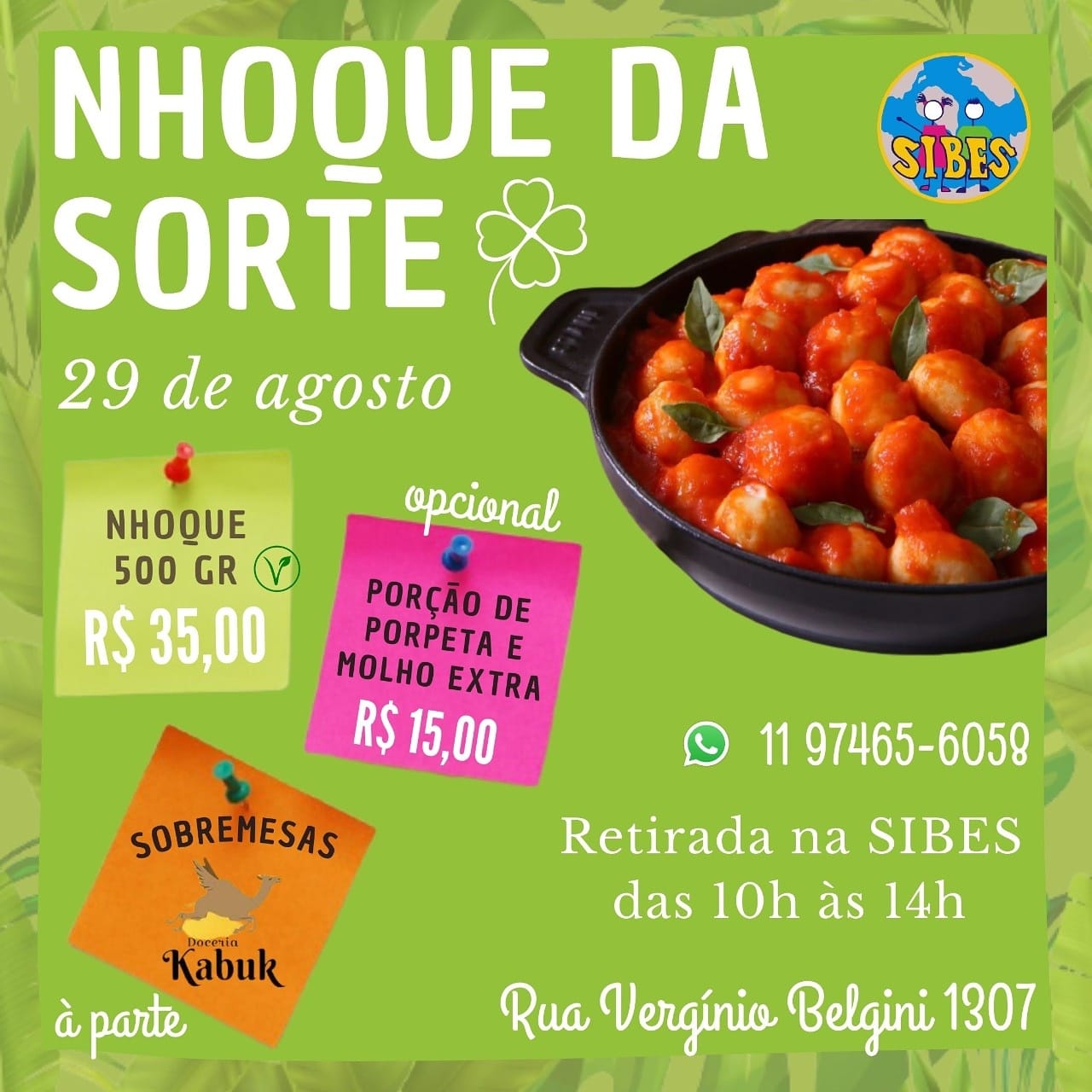 Amelio Vieira Neto, Ana Célia, Juliana Fattori, Nilza Deiroz, Deborah Oliveira, Maria Eduarda, Inez Altieri, Lorena Vieira, Dalila Castro, Paulo Urias e Paulo Deiroz, no “Nhoque da Sorte”, da SIBES – Sociedade Itatibense para o Bem Estar Social, realizado no sistema de retirada na entidade, neste domingo,dia 29.