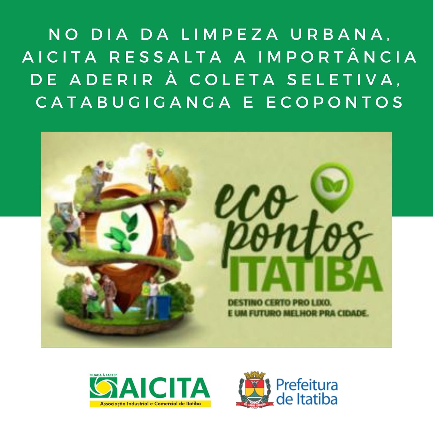 A Associação Industrial e Comercial de Itatiba (Aicita) vem neste Dia da Limpeza Ubana (27/08/2021) ressaltar a importância de os habitantes aderirem à Coleta Seletiva, ao Catabugiganga e aos Ecopontos. Pensando sempre no desenvolvimento ordenado do município, fortalecendo a economia e respeitando o meio ambiente, reforça aos associados a importância de seguir orientações sobre a limpeza urbana.