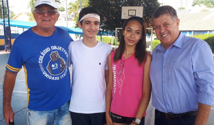 Paulo Costa, Gustavo Conceição, Ana Beatriz e Juninho Parodi na tradicional gincana do Colégio Objetivo Itatiba, retornando presencialmente em sua 16° edição, na quarta-feira, 20.