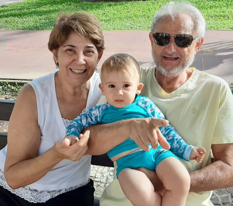 O Super Pai e Avô Toninho Tescarollo completou 70 anos nesta sexta-feira,26. Na foto, um belo registro do verão de 2019 com sua esposa Sueli e o irradiante netinho Gabriel.