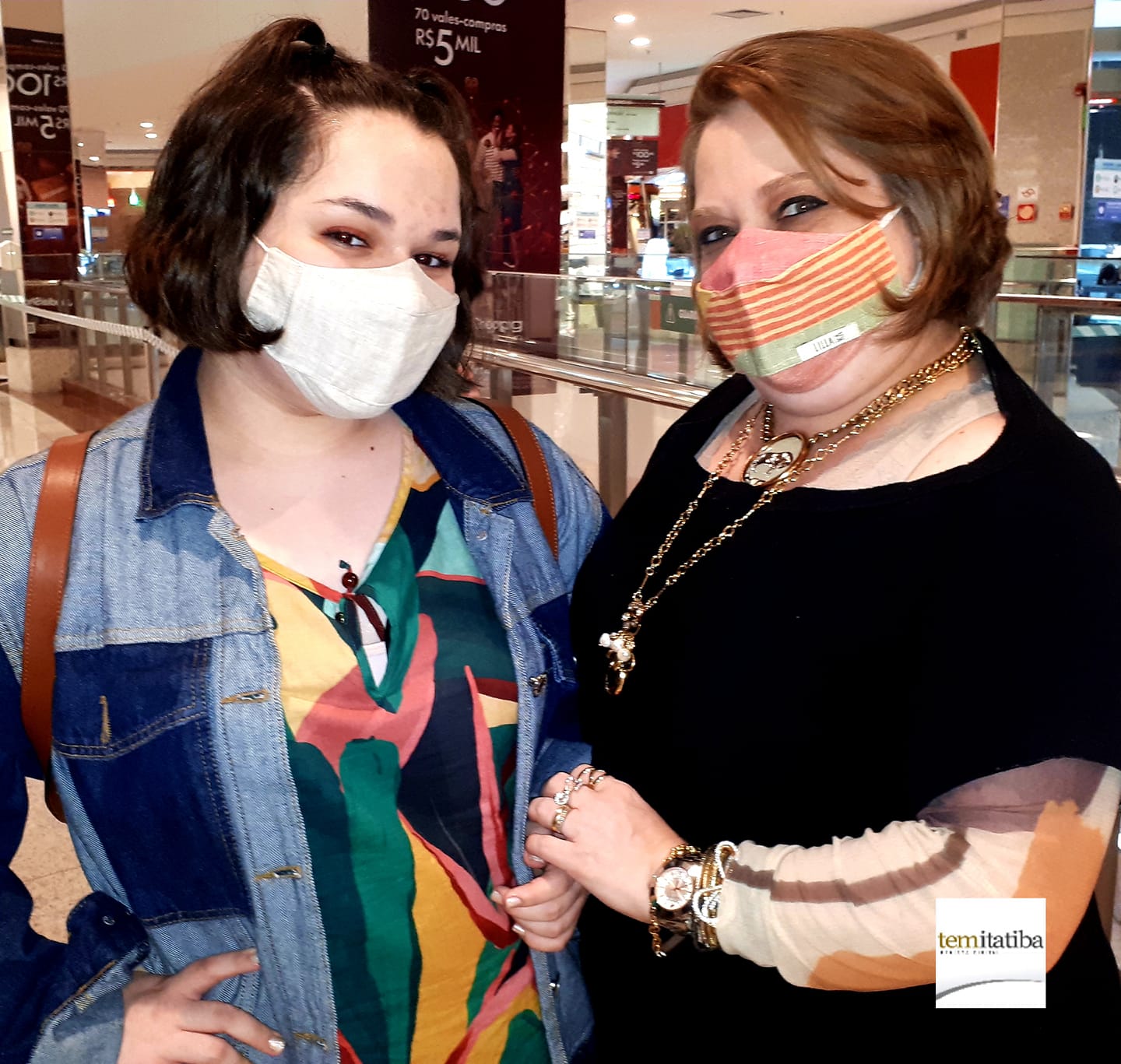 Mamãe Vanessa Donatti e Eduarda Donatti, a “Duda Brinquedos”, que estampa o banner na rua Francisco Glicério, ao lado do restaurante Kampai.
