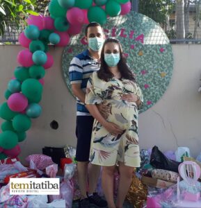 O papai Douglas Augusto Pinheiro de Oliveira e a mamãe Mayara Lopes de Oliveira, completando hoje 38 semanas de gestação, aguardam a chegada de “Cecília”, que neste domingo (14), foram agraciados com uma “charreata” de fraldas.