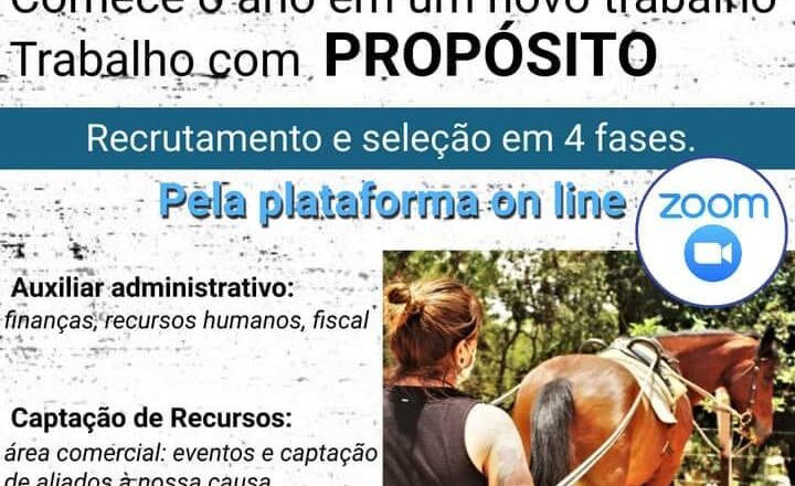 No próximo dia 11 de Janeiro, o Instituto Passo a Passo Equoterapia fará o recrutamento e seleção de candidatos para atuar como auxiliar administrativo e captação de recursos (área comercial), das 14h às 17h.