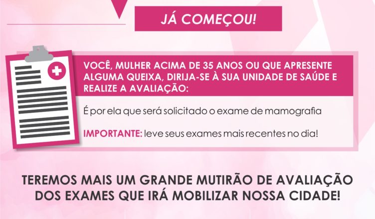 Outubro Rosa começa com retiradas de guias para exames nesta segunda, 02/09
