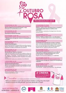 O sábado, 5, começa com o 1º mutirão para entrega dos exames de mamografia já realizados. Este mutirão acontece no Ambulatório Central de Especialidades, SUS, das 9h às 12h. No mesmo dia, das 9h às 17h, a loja Mahogany, localizada na Rua Rangel Pestana, 197, no Centro de Itatiba, receberá doações de fraldas geriátricas que serão entregues à Rede de Voluntárias de Combate ao Câncer de Itatiba. Parte da renda deste dia também será destinada à esta instituição.