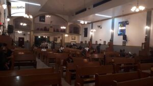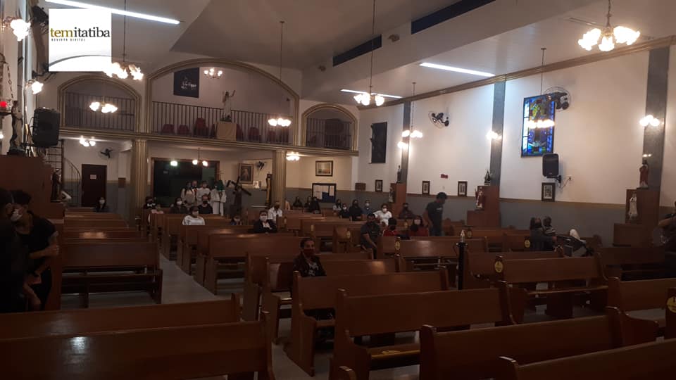 A orientação para retomada da celebração eucarística é de no máximo 40 pessoas e hoje haviam trinta fiéis no total com menos de 60 anos participando da Santa Missa, mantendo distanciamento estabelecido nos bancos, utilizando máscara facial, com higienização na entrada e frascos de álcool gel distribuídos por todo o espaço.