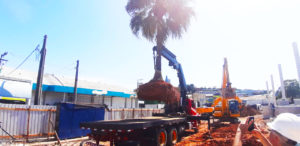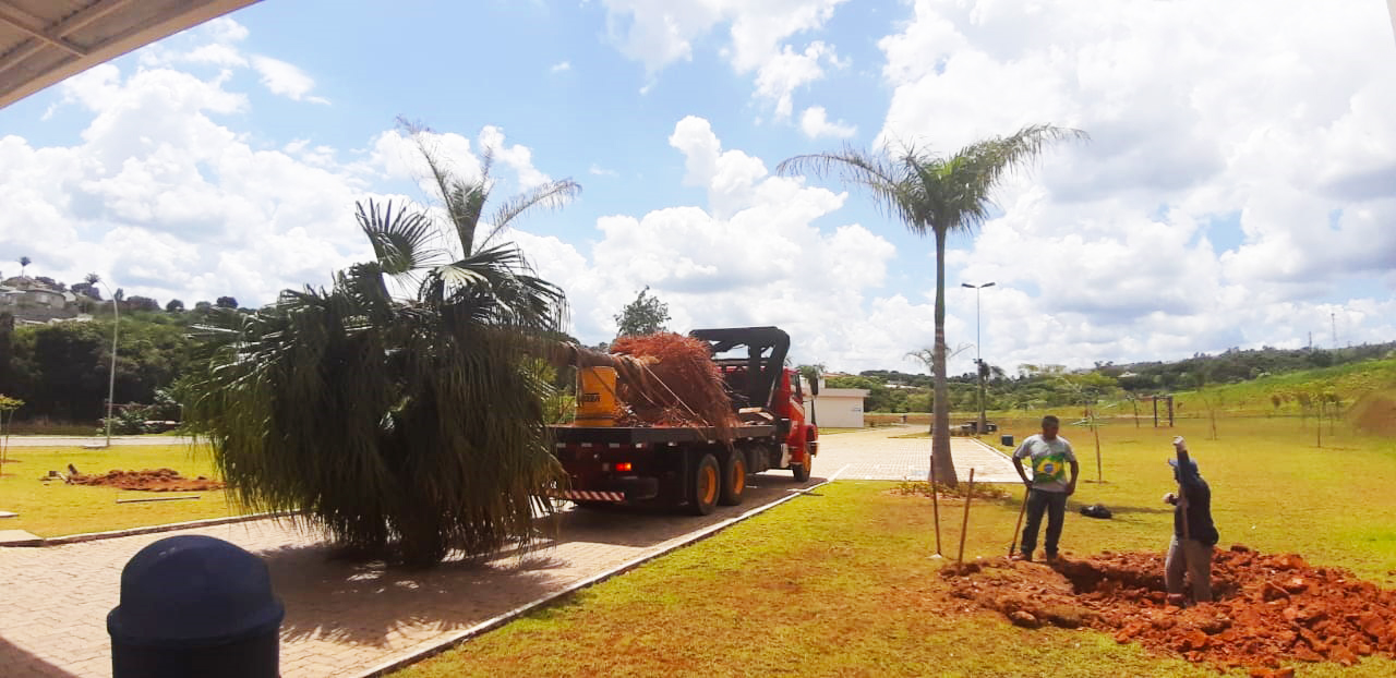 Na última semana, duas palmeiras Carnaúba e cinco palmeiras Arecasa foram transplantadas para o Parque Linear Antônio Fattori.