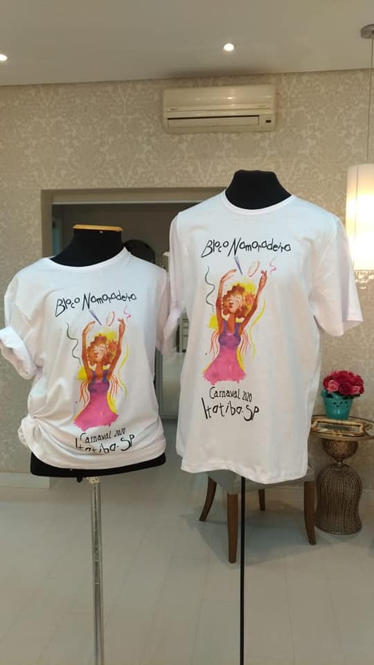 A camiseta do bloco Namoradeira, para os foliões que queiram usar no Carnaval de Itatiba, estão sendo vendidas por R$ 25,00 cada no salão Wandda’s Fashion Hair, do Itatiba Mall.