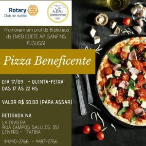 Cada pizza vendida contribui para a biblioteca da EMEB Eliete Ap. Sanfins Fusussi.