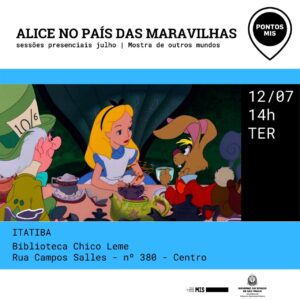 Pontos Mis na Biblioteca Municipal julho 10, 2022julho 13, 2022admin Nesta terça-feira, dia 12, tem @pontos_mis na Biblioteca Municipal Chico Leme! Às 14h venha assistir ao clássico “Alice no País das Maravilhas”, uma produção de Walt Disney, gratuita!! **Divulgação Tem Itatiba **