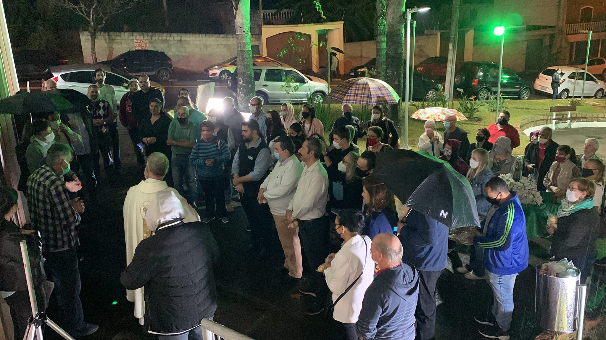 Sob chuva, benção e cerimônia rápidas formalizaram entrega