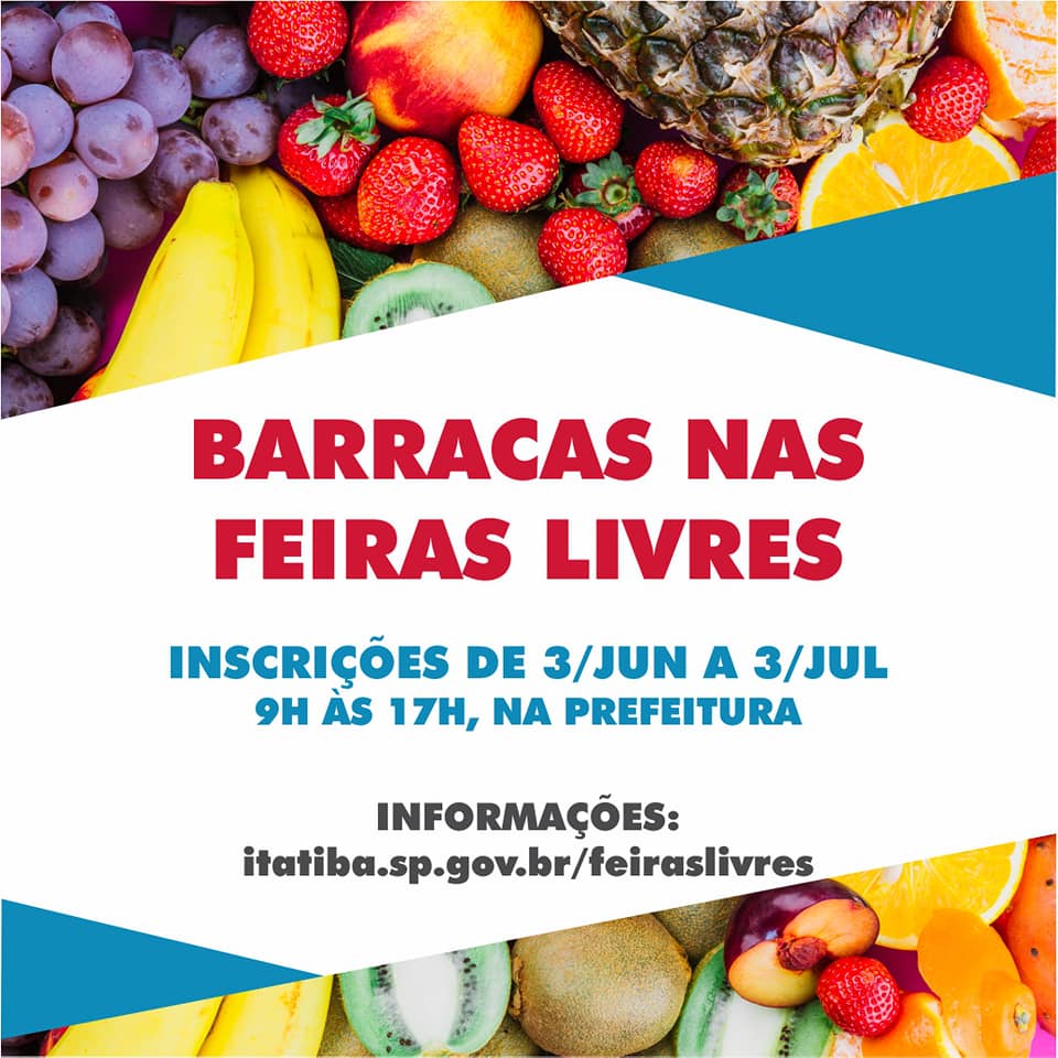 No período de 03 de junho até 03 de julho, os interessados em ter um espaço nas feiras livres de Itatiba poderão se dirigir à Prefeitura para fazerem suas inscrições para o sorteio. Serão 53 novos espaços abertos no total, incluindo as feiras de quinta e domingo. As duas feiras tinham 69 barracas e agora terão no total 122. Há quase duas décadas não era realizado um sorteio para novas oportunidades.
