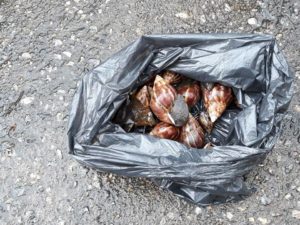 * A melhor ocasião para capturar os moluscos é ao final da tarde e em nos dias nublados e chuvosos, quando saem de seus abrigos em maior número.