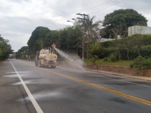 Além da limpeza regular da cidade, como a varrição, desde o final de março um caminhão-pipa vem lavando diariamente as vias públicas e, com mais frequência, vias com maior fluxo e as vias em que estão localizadas as Unidades Básicas de Saúde e o Hospital Municipal Santo Antonio.
