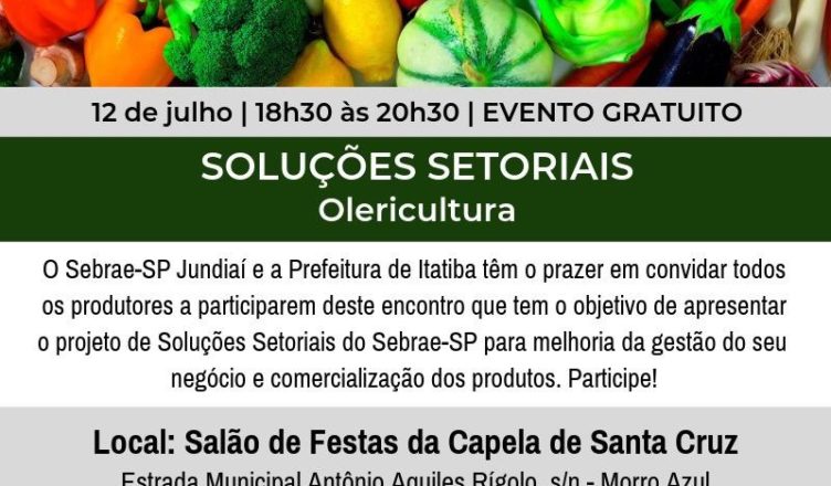 Respeitando o cronograma 2019 de palestras voltadas para os produtores rurais e profissionais da agricultura, a Prefeitura de Itatiba em parceria com o Sebrae-SP oferecerá no próximo dia 12 de Julho a apresentação do projeto de Soluções Setoriais do Sebrae- SP.