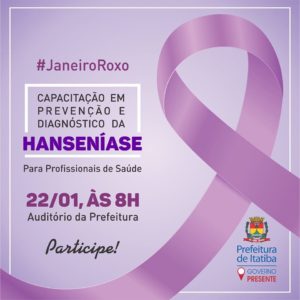 A Prefeitura de Itatiba, através do Centro de Testagem e Aconselhamento e do Serviço de Assistência Especializada, oferece no próximo dia 22, às 8h, no auditório do Paço Municipal, uma palestra e capacitação sobre a hanseníase com o médico dermatologista Dr. Aldo Leão para profissionais de saúde das unidades da cidade. A ação faz parte do Janeiro Roxo, mês oficializado pelo Ministério da Saúde para campanhas educativas sobre a doença em todo o país.