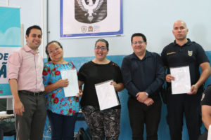 Alunos das EMEBs Prof. Inês Prado Zamboni e Prof. Rosa Scavone receberem, na manhã de 10 de setembro, os certificados de participação no Curso de Combate e Prevenção Sobre o Uso de Drogas, ministrado pelos Guardas Municipais do Departamento da Ronda Escolar Neves, Betim, Assis, Cássio e Benevides.
