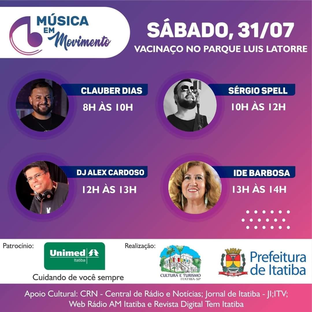 Projeto Música em Movimento julho 30, 2021agosto 4, 2021admin Amanhã, dia 31, tem Música em Movimento durante o Vacinaço no Parque Luis Latorre.