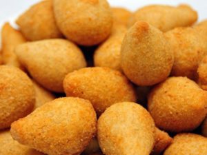 A coxinha, considerada o salgadinho brasileiro mais amado e consumido do País, tem sua casquinha crocante e a massa derrete na boca. Este petisco também vem acompanhado dos outros salgados como bolinha de queijo, kibe, croquete, enroladinho de catupiry com milho, travesseiro de presunto e queijo/carne. Todos os salgados são fritos na hora.