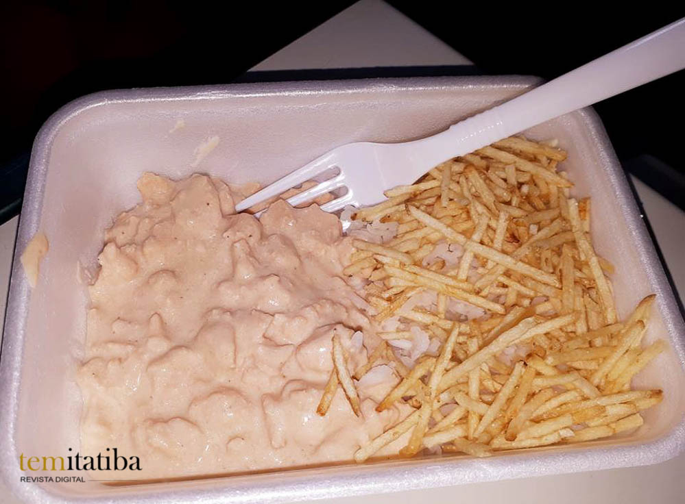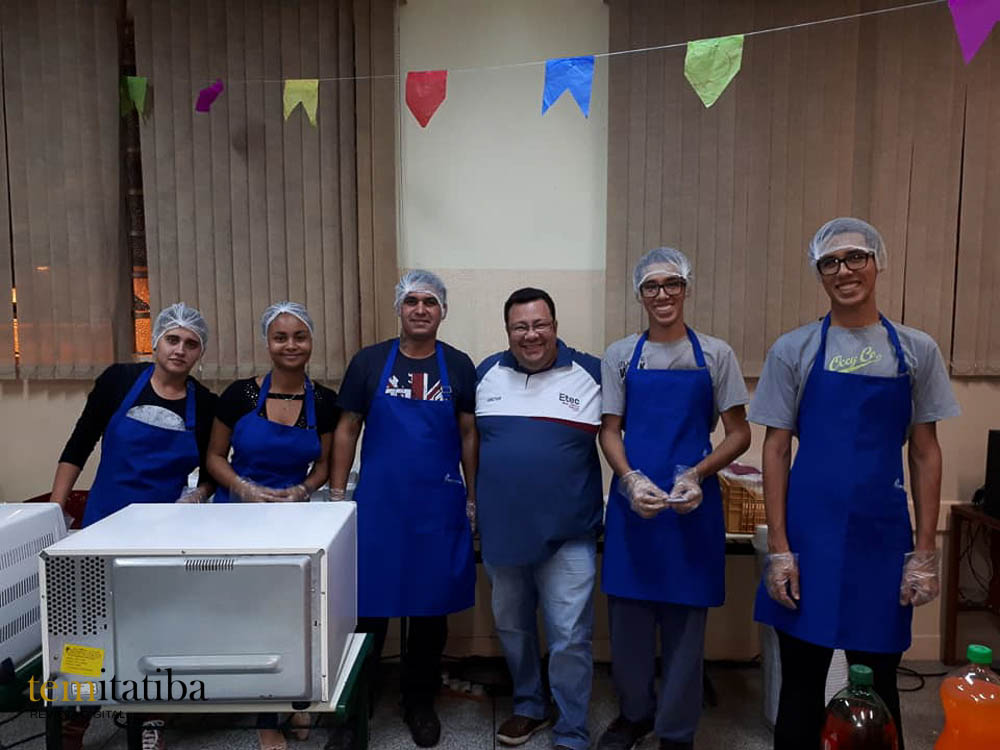 A ETEC Rosa Perrone Scavone entra com o suporte de embalagens descartáveis e refrigerante (em todas as seis salas foi servido um copo de refrigerante junto à refeição).