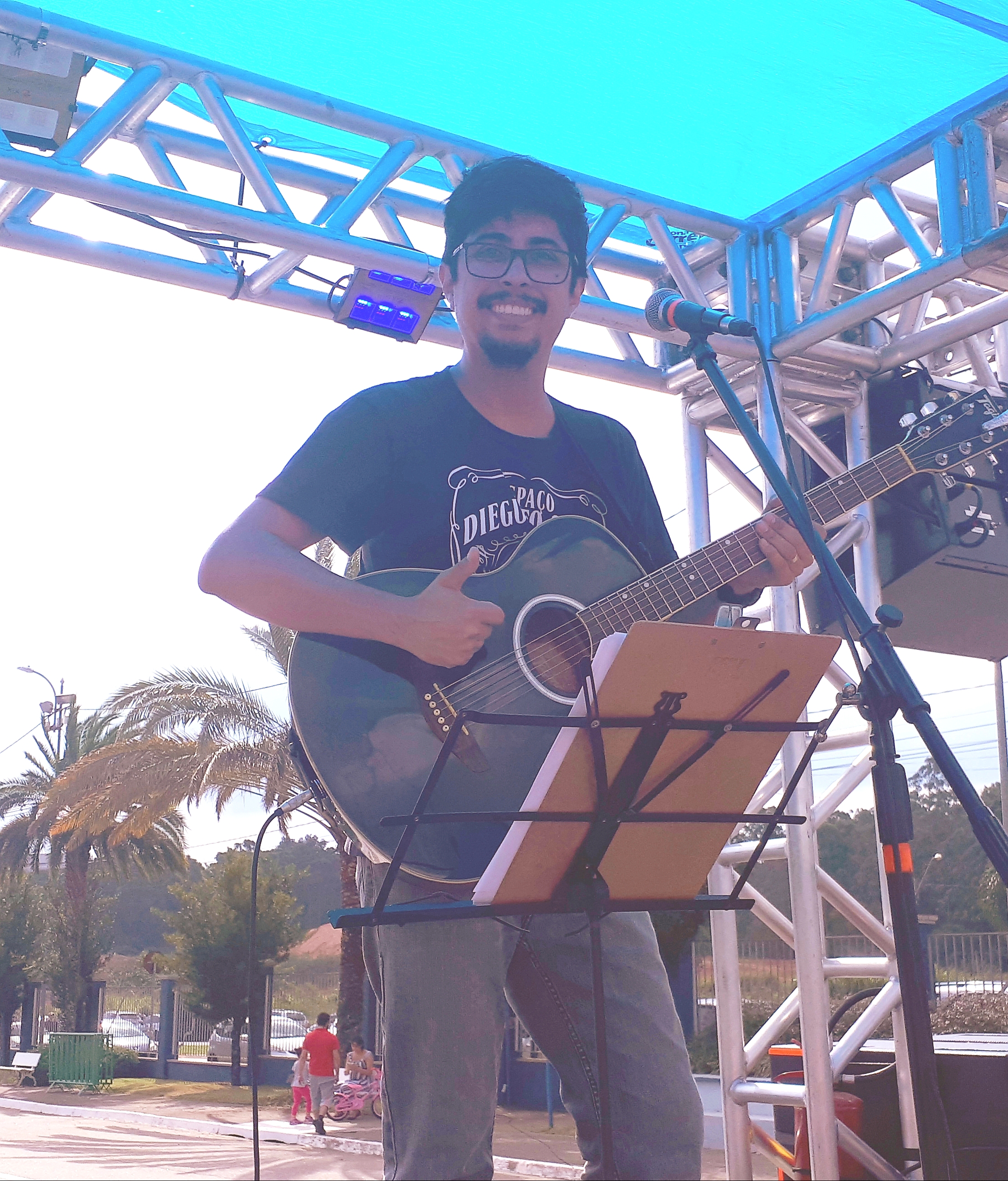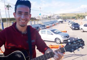 O artista Dieguito Silva em apresentação musical no Quinto Vacinaço. (Foto Dani Marzano)