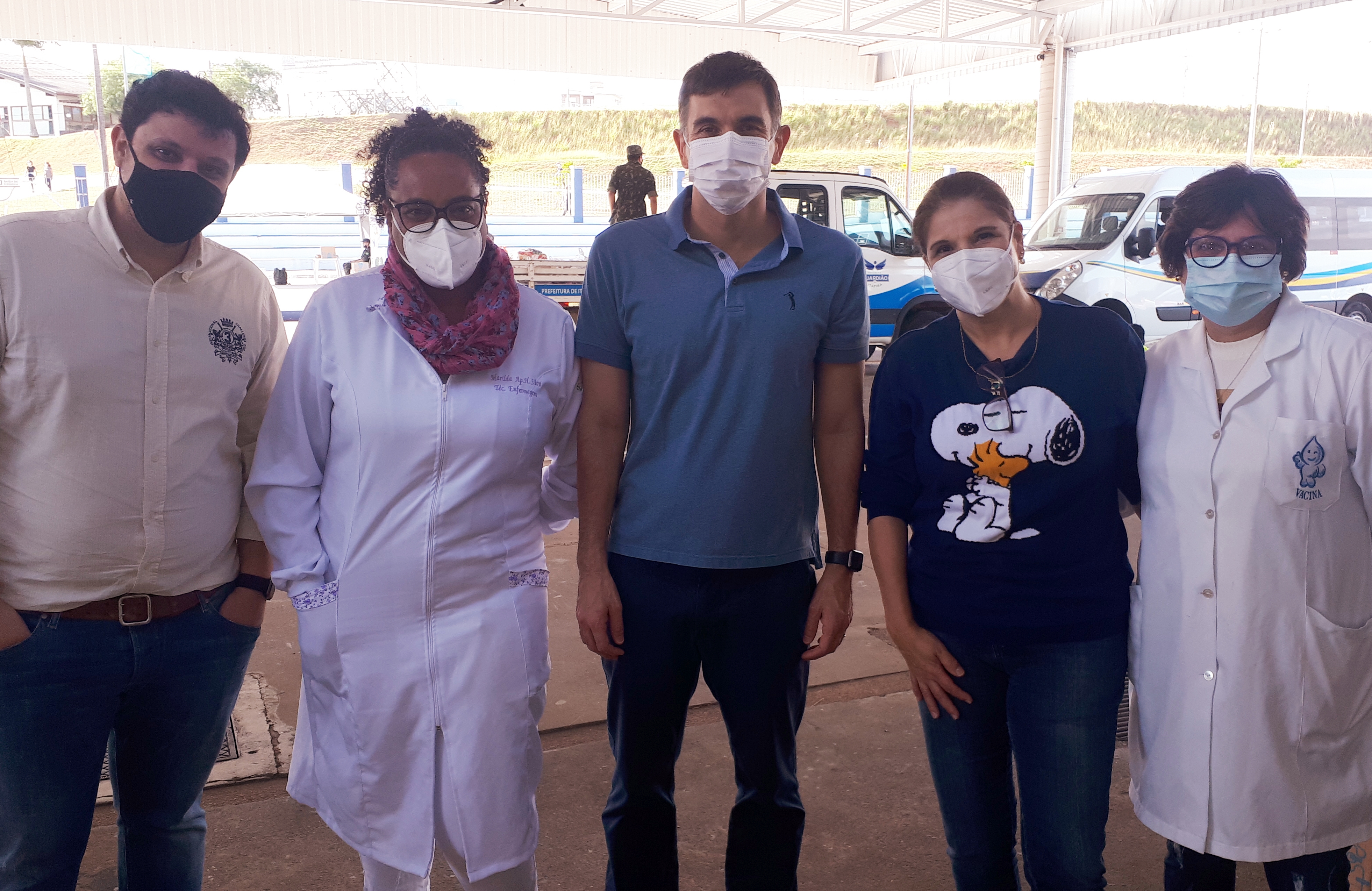 Felipe Leme, Leila Ferreira e Eduardo Fassina participaram do Quinto Vacinaço no Parque da Juventude. (Foto Dani Marzano)