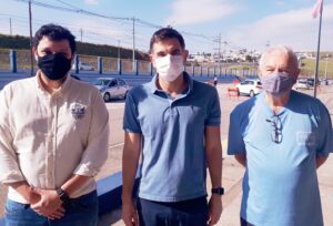 O Secretário de saúde de Itatiba, Renan Dias Irabi, o Prefeito de Itatiba Thomás Capeletto de Oliveira e Mané Massaretti. (Foto Dani Marzano)
