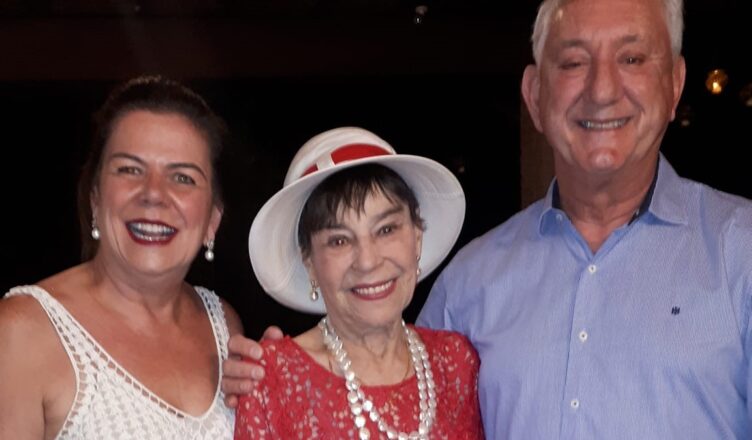 Parabenizamos Maria Francisca Thereza da Silveira pelo seu aniversário celebrado nesta quarta-feira, 11. Na foto, Thereza está ao lado do elegante e carismático casal Ana Rita Borella e Magno Borella . Desejamos muitas felicidades !