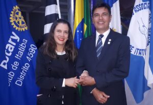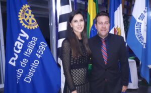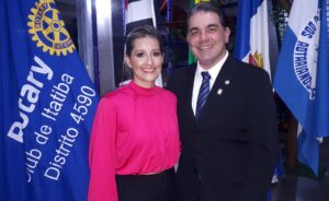 O Presidente do Rotary Club de Itatiba, ano rotário 2022/2023 João Francisco Magnusson e sua esposa Rafaela Campolongo Magnusson.