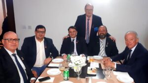 A Governadora do Distrito 4590 2020-2021, Ancely Rosa Gincieni, o Governador do Distrito 4590 2013-2014, Marco Antonio Ginciene ; Meire Cappucelli, Claudete Baldi e a Coordenadora Distrital 4590 2022 – 2023 , Nelly Maria Wachulka.