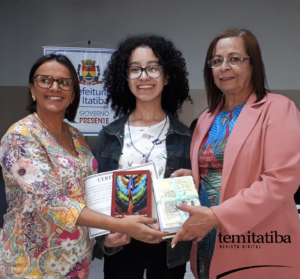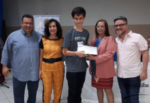 Carlos Eduardo de Oliveira, 15 anos, morador do Porto Seguro, é aluno do primeiro ano do ensino técnico de administração integrado ao médio da ETEC Rosa Perrone Scavone, faz parte do Conselho da Escola e é orador da chapa do grêmio estudantil. Seu texto “Reservas Indígenas” foi selecionado para o Revelando Talentos II e em entrevista ao “Tem Itatiba”, Carlos contou que está na dúvida em ser engenheiro ambiental ou advogado: “Me identifico com o setor do meio ambiente em relação aos projetos em que trabalhei antigamente na minha escola do ensino fundamental (EMEB Nazareth) e fazer faculdade de Direito engloba questão do diálogo, da conversa que eu gosto também!”, comentou ao lado dos pais Carlos e Pâmela.
