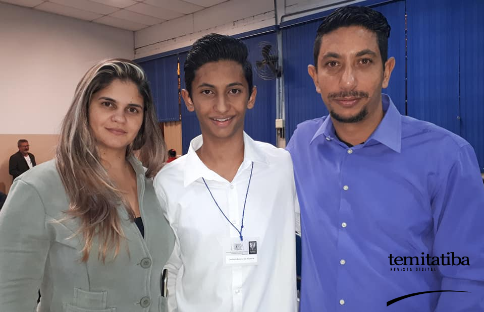 Carlos Eduardo de Oliveira, 15 anos, morador do Porto Seguro, é aluno do primeiro ano do ensino técnico de administração integrado ao médio da ETEC Rosa Perrone Scavone, faz parte do Conselho da Escola e é orador da chapa do grêmio estudantil. Seu texto “Reservas Indígenas” foi selecionado para o Revelando Talentos II e em entrevista ao “Tem Itatiba”, Carlos contou que está na dúvida em ser engenheiro ambiental ou advogado: “Me identifico com o setor do meio ambiente em relação aos projetos em que trabalhei antigamente na minha escola do ensino fundamental (EMEB Nazareth) e fazer faculdade de Direito engloba questão do diálogo, da conversa que eu gosto também!”, comentou ao lado dos pais Carlos e Pâmela.
