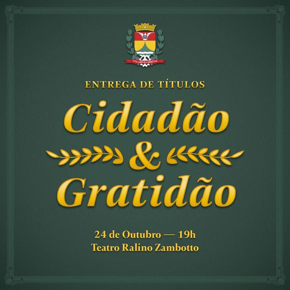 A Câmara Municipal de Itatiba realizará no próximo dia 24, às 19h, a tradicional sessão solene de entrega de títulos de Cidadão Itatibense, Gratidão do Povo Itatibense e Cidadão Benemérito. A cerimônia também comemora os 162 anos de emancipação político-administrativa de Itatiba e será realizada no Teatro Ralino Zambotto.