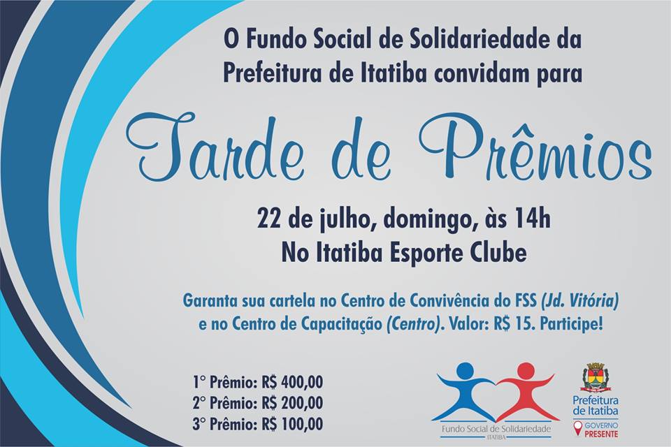 Reúna seus amuletos da sorte, faça “figa” e participe da Tarde de Prêmios promovida pelo Fundo Social de Solidariedade!!
