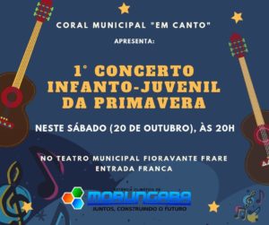 O Coral Municipal “Em Canto” apresentará o 1º Concerto Infanto-Juvenil da Primavera, neste sábado (20/10), às 20h, no Teatro Municipal Fioravante Frare.