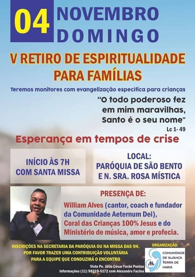 V Retiro de Espiritualidade para Famílias dia 04/11/2018.