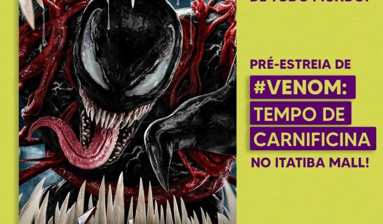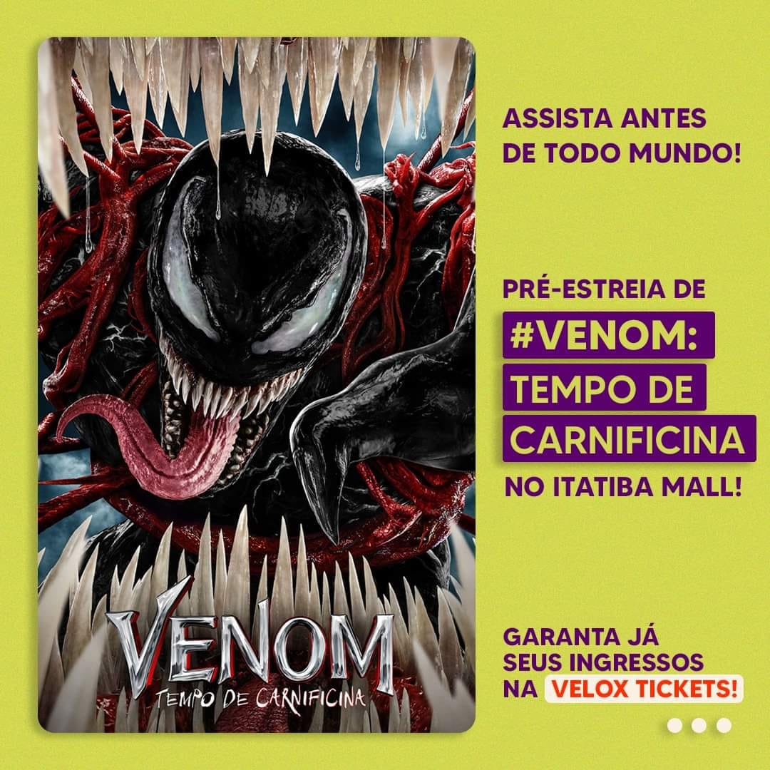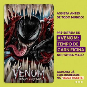 Vamos para o Multiplex Itatiba Mall ver VENOM outubro 6, 2021outubro 7, 2021admin A ESPERA ACABOU! O caos invadiu as telas do cinema do Itatiba Mall! 😮 Assista #Venom: Tempo de Carnificina HOJE na pré-estreia! 🎟 Garanta já seu ingresso: https://bit.ly/3D0s4dv #VocêNoMultiplex