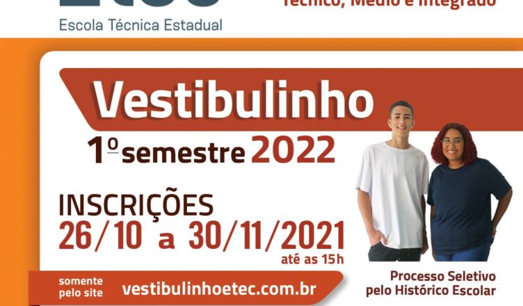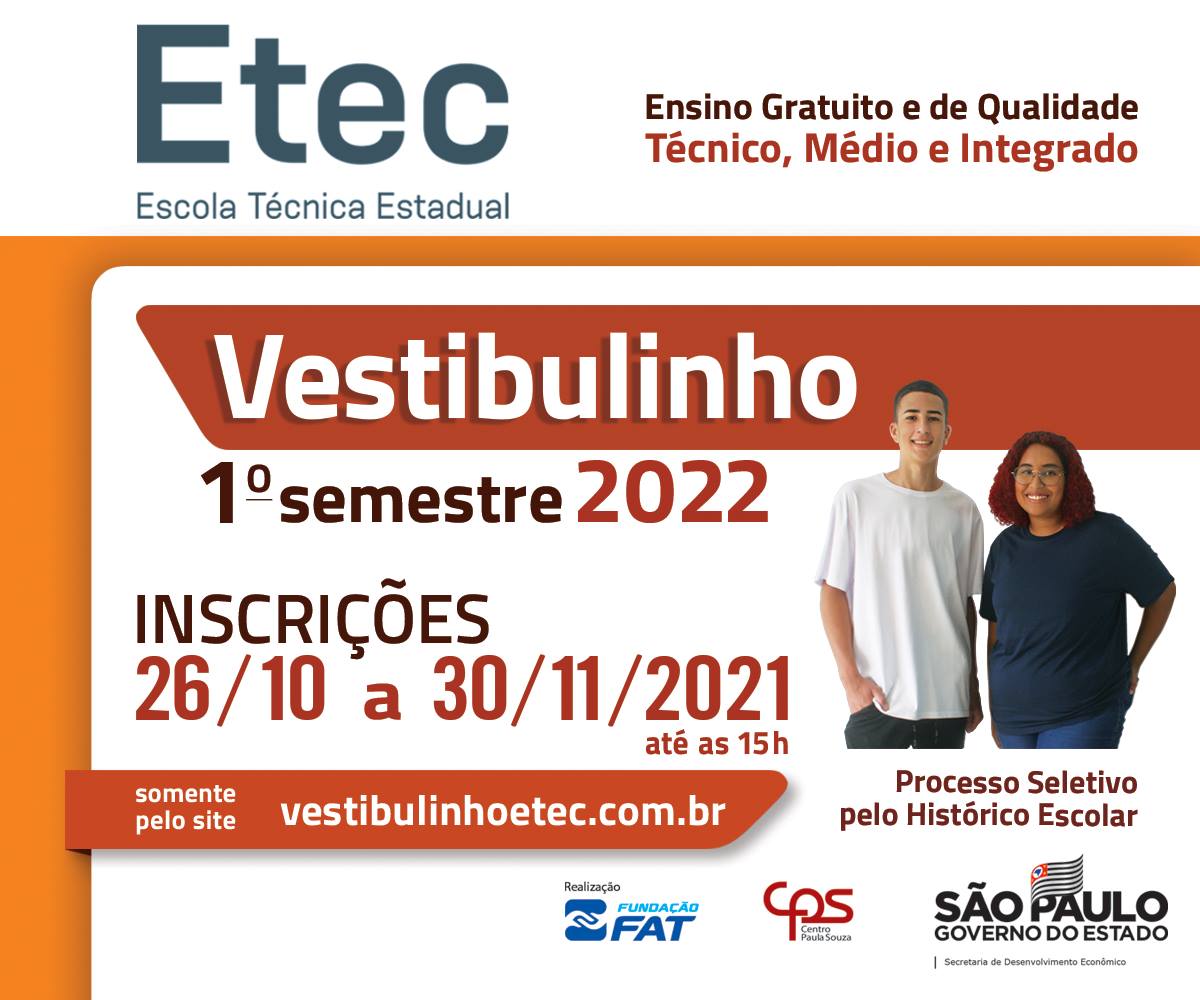 Chegou a data tão esperada, Inscrições Vestibulinho Etec 1º Semestre de 2022.