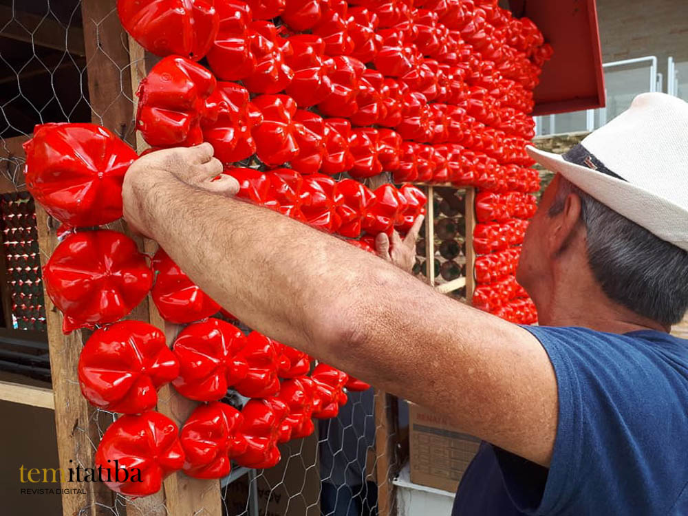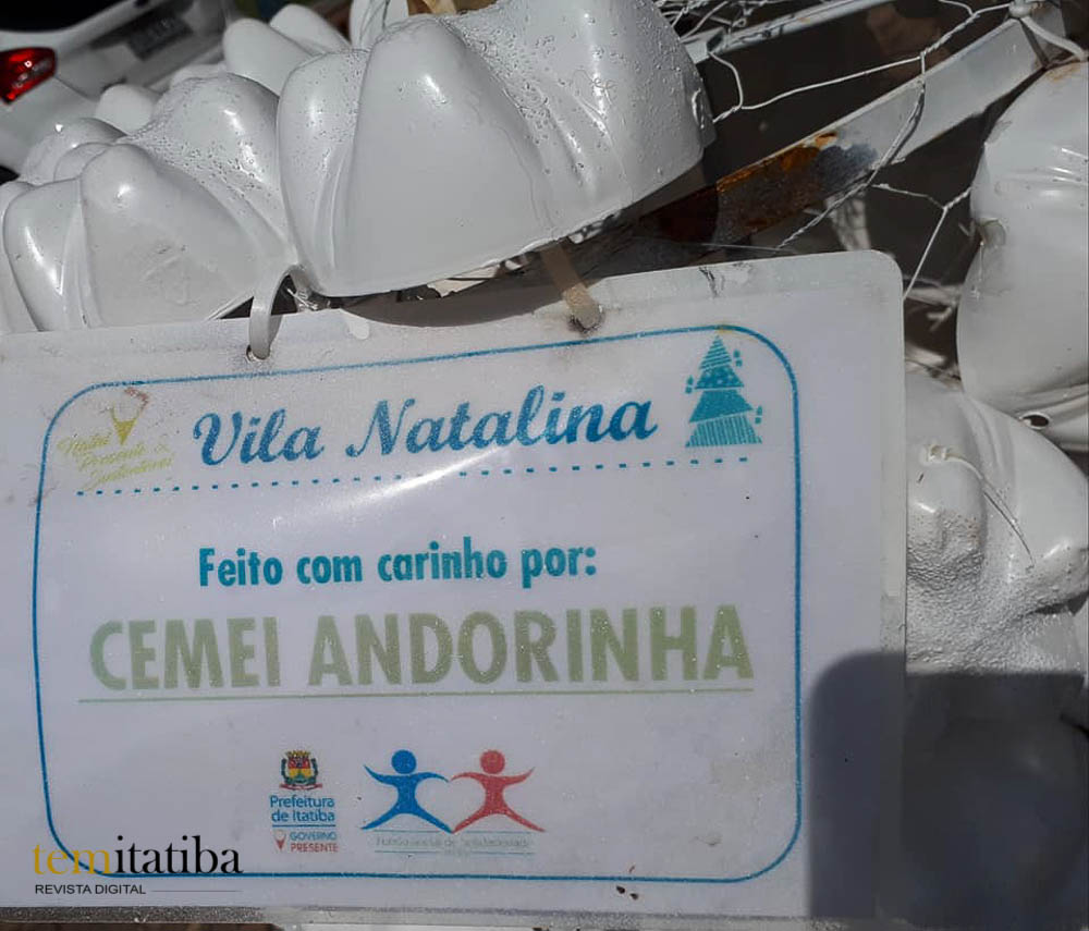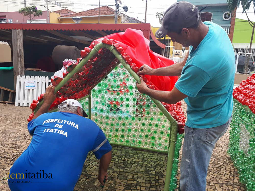 A grande árvore já está pronta. A estrutura é a mesma da Vila Natalina 2017,o tipo de corte da garrafa pet foi modificado a deixando mais volumosa. São 6 metros de altura mais 1.20 metros de estrelas. As 60 escolas da rede municipal de ensino realizaram as “bengalas de caramelo” que serão distribuídas no centro da cidade, todas com nome de identificação nos enfeites confeccionados: “Este ano trazemos também um palco para apresentações, a casinha de duendes, fábrica de brinquedos e doces com uma esteira que ganhamos do Itatiba Shopping Center. A ideia de colocar o doce na Vila Natalina este ano com a ‘fábrica’ e as ‘bengalas de caramelo’ é para priorizarmos a tradição que Itatiba possui do Papai Noel jogar balas pelas ruas”, comenta.
