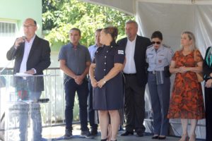 “É importante quando se fala em investir em Segurança que se pense primeiro no ser humano, nos profissionais, nas condições de trabalho, e é isso que estamos fazendo. E com a reestruturação da ROMU, com nova viatura, treinamento especializado e aquisição de novos equipamentos, vamos comais força enfrentar desafios como o tráfico”, destacou o prefeito Jaime Cruz durante o evento, que contou com a presença da vice-prefeita, Claudinéia Vendemiatti Serafim, de secretários municipais, vereadores, e autoridades de diversos outros municípios.