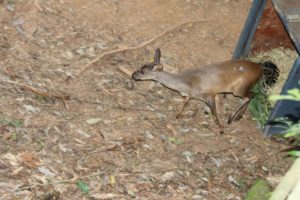 O veado catingueiro foi atropelado na região do Cristo, no último domingo, e encontrado com algumas escoriações pela equipe do GAPA após solicitação de morador. Devido ao susto, o animal foi encaminhado para a Mata Ciliar, em Jundiaí, onde recebeu atendimento médico. Por se tratar de ferimentos leves, sem necessidade de curativos, os veterinários optaram por deixar que o bichinho se recupere na própria natureza.