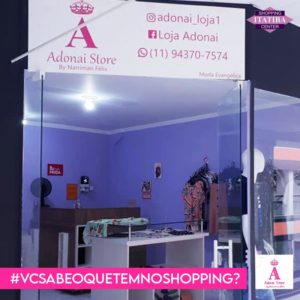Você sabe o que tem no Shopping? abril 1, 2020abril 1, 2020admin A loja Adonai está há pouco tempo no Itatiba Shopping Center e já é querida por todos. A proprietária Narriman oferece roupas femininas, masculinas, bolsas, cintos e carteiras, tudo a preço acessível e de qualidade. 11- 94370 7574